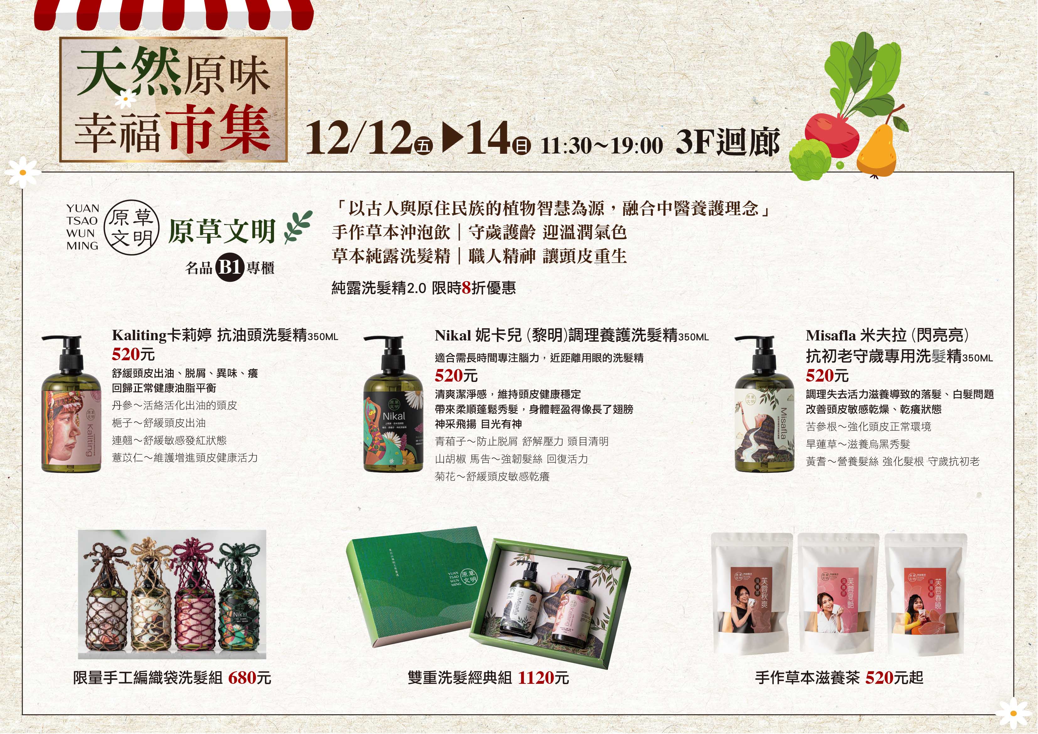 生活就是要自然|天然原味幸福市集![]() ![]() 帶著台灣土地的草本能量,走進福華 名品3 樓迴廊, 為大家帶來一場充滿自然香氣的 「天然原味幸福市集」。 地點|福華大飯店 ‧ 福華名品 3 樓迴廊 日期|12/12(三)→ 12/14(五) 11:30 – 19:00![]() |